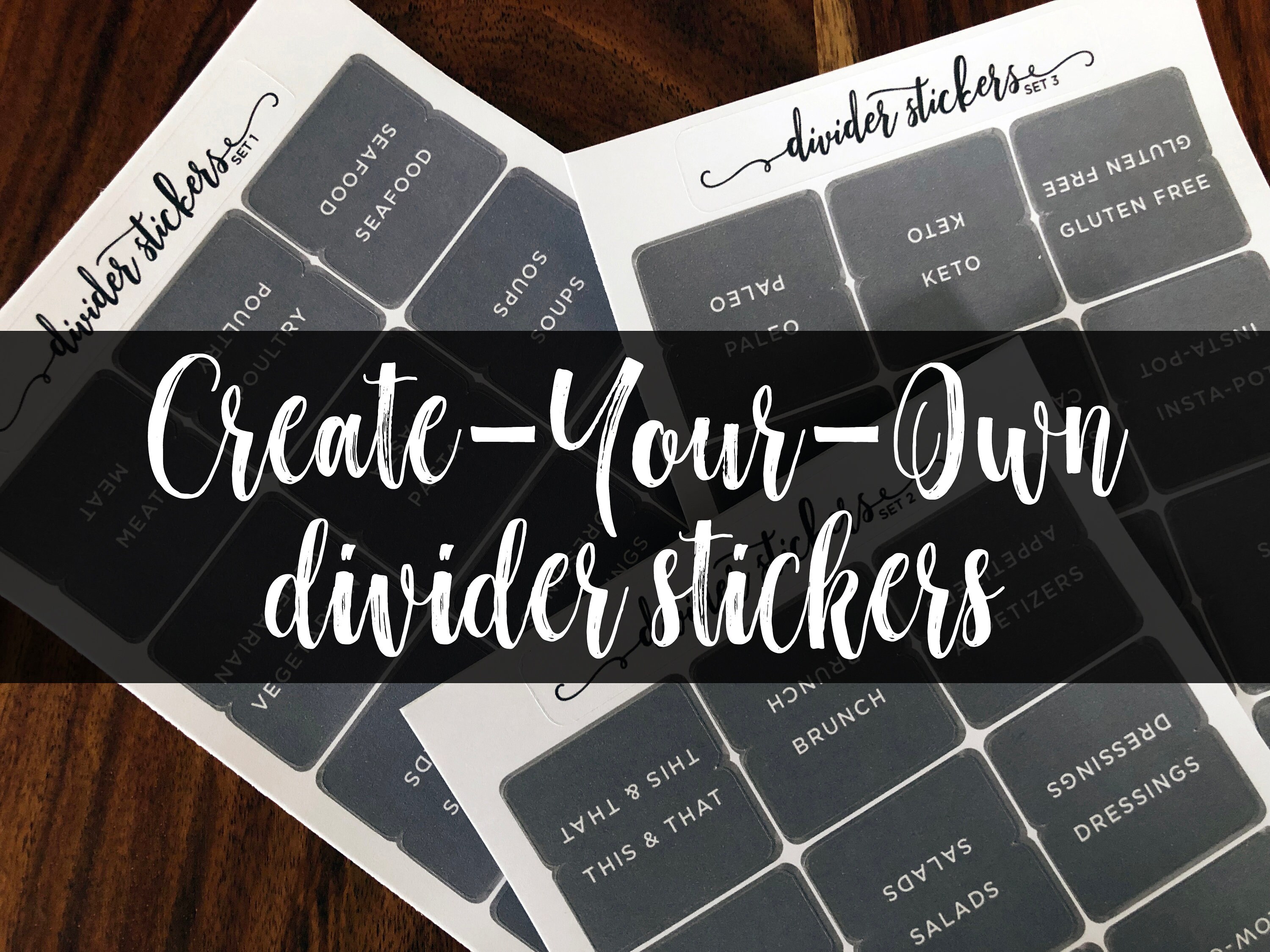 Custom DIY Recipe Box Dividers - Bliss Ranch You can see the recipe box details here, and the sugar stencil here. But a recipe box needs dividers so a gal doesn't get confused and concoct something like strawberry meatball poke cake sauce, and when I couldn't find the right sized dividers, with labels that said exactly what I wanted, I made my own.