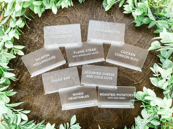 Food Name Signs, Food Tents, Buffet Labels, Food Name Cards, Clear Acrylic Wedding Signs, Wedding Table Signs, Buffet Table Signs