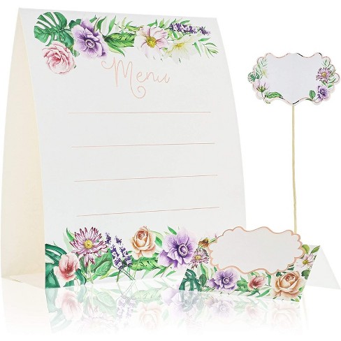 Juvale 24-Piece Set Buffet Table Decor Signs - Floral Menu Tent Cards, Blank Place Cards & Food Pick Label