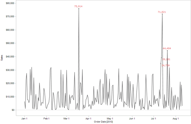 Add Box Plot Labels | Tableau Software In the Add Reference Line, Band, or Box dialog, do the following: Select Line For Scope, select Per Cell For Value, select SUM (Sales), Median For Label, select Value For Line, select None Click OK Repeat steps 1-2 for Lower Hinge, Upper Hinge, Lower Whisker, and Upper Whisker, using the calculation in place of SUM (Sales) Additional Information